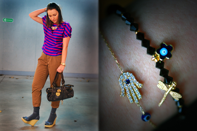blouse: orsay trousers: atmosphere shoes: ivanka trump bag: bebe necklace: accesorize bracelets: gift from father ( who doesn’t travel in winter! ;) )