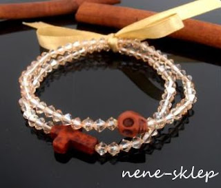 Pierwszy wariant to dwie bransoletki połączone wstążką. Kryształy Swarovskiego + czaska i krzyż z howlitu = no właśnie, zobaczcie sami :) Zwycięzca wybiera kolor wszystkich elementów łącznie ze wstążeczką.