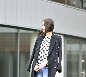 Łączenie pasków z groszkami, czy to nie brzmi ryzykownie? Sami się przekonajcie oglądając dzisiejsze zdjęcia. Mój nieco zwariowany zestaw to koszula w groszki i spódnica w paski. Już wiele razy wspominałam Wam o tym, że uwielbiam łączyć wzory. W zestawie tym czuję się wspaniale. Jest on wygodny, kobiecy, elegancki, ale ze szczyptą fantazji, czyli wszystko to co lubię najbardziej. Jeżeli macie ochotę na podobne połączenia wzorów, to spróbujcie właśnie z ubraniami w czarno-białe printy. Dodając do tego pozostałe akcesoria w kolorze czarnym, możecie być pewne, że nie będziecie wyglądać śmiesznie, a oryginalnie. Podoba Wam się taka stylizacja?