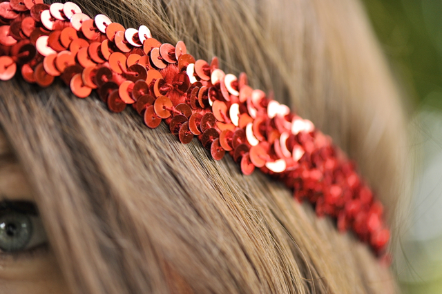 Bardzo ciekawa bluzka! Ta opaska we włosach + czerwone dodatki – bardzo fajny efekt! Do tego piękny naszyjnik!