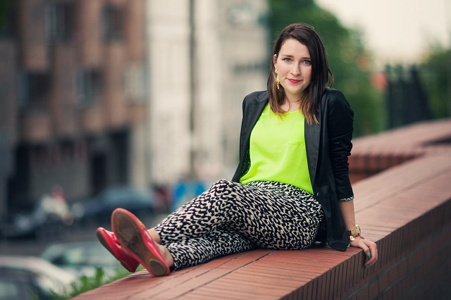 Świetne te lordsy, powiem Ci, że mam podobne, identyczny krój, tylko moje są z takiego beżowego zamszu. Bardzo podoba mi się ta stylizacja, świetnie połączyłaś neonową bluzkę z czernią i bielą, co tochę tonuje ten neon. Pozdrawiam!