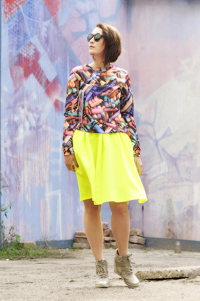Dzisiaj przedstawiam Wam neonową spódniczkę z butiku Lilalu. Właśnie taką możecie wygrać w obecnie trwającym konkursie :) Wszystkie informacje znajdziecie tutaj: KLIK Połączyłam ją z butami sportowymi na koturnie oraz bluzą trójmiejskiej projektantki tworzącej pod nazwą EVC-DSGN. Kolorowy nadruk w kredki z zabawnymi napisami od razu wpadł mi w oko. Zajrzyjcie na stronę internetową i zobaczcie […]