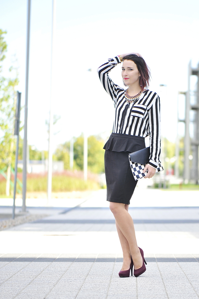 Dzisiaj na blogu po raz kolejny elegancka stylizacja. Tym razem spódnicę z baskinką łączę z paskami i kratką. Podoba Wam się taki miks wzorów? Fotograf / photographer: from Cyryl Mam na sobie / Wearing: spódnica / skirt: New Look bluzka/ blouse: FB Moodo, Moodo buty / shoes: New Look torebka / bag: New Look bransoletki / bracelets: FB Joccos Personal-Style, strona Joccos Personal […]