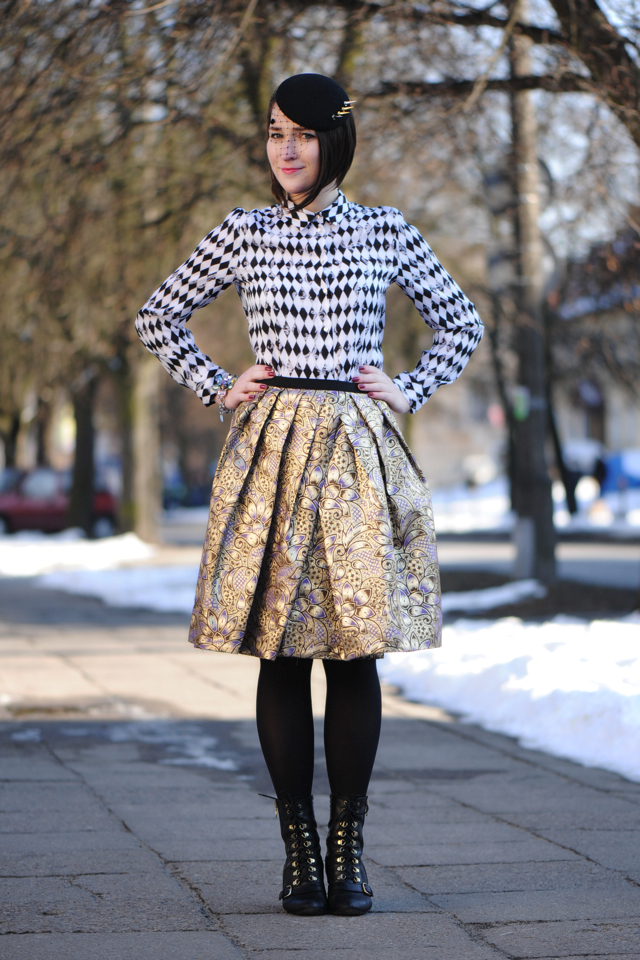 Zdjęcia: Szymon Brzóska – Style Stalker Mam na sobie: buty: nine west spódnicę: MissSpark bluzkę: h&m bransoletkę: who? kopertówkę: MissSpark kołnierzyk: My collar Mój profil na fb: Shiny Syl
