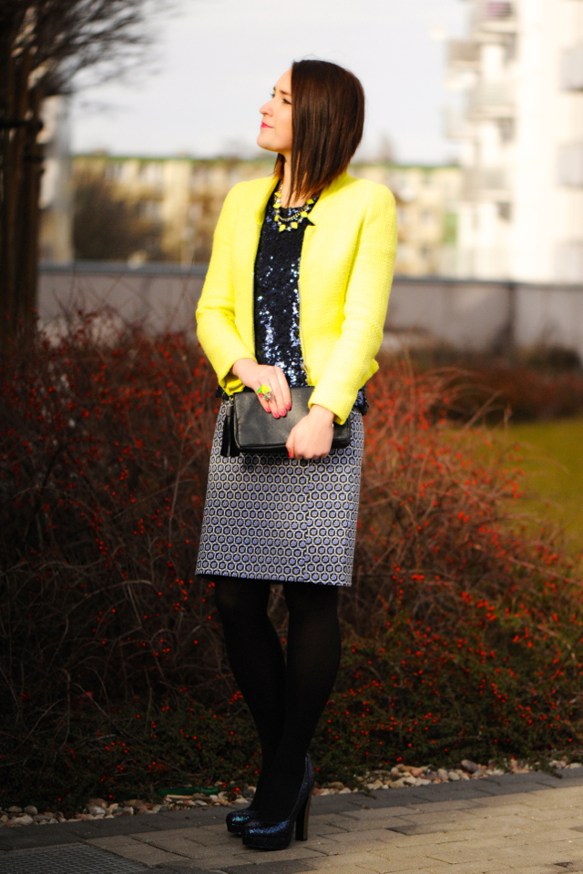 Mam na sobie: buty: reserved spódnicę: h&m bluzkę: h&m żakiet: zara torebkę: h&m pierścionek i kolczyki: Kate&Kate naszyjnik: h&m Mój profil na fb: Shiny Syl
