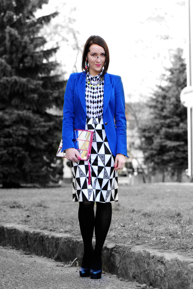 Mam na sobie: marynarkę: attentif bluzkę: h&m naszyjnik: h&m torebka: Lolay Vintage Boutique kolczyki: Six woal: Misstery buty: reserved spódnicę: Lolay Vintage Boutique Mój profil na fb: Shiny Syl