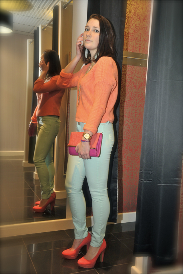 Śliczna kopertówka i buty. Kocham zestawienie pomarańczowy i różowy :)