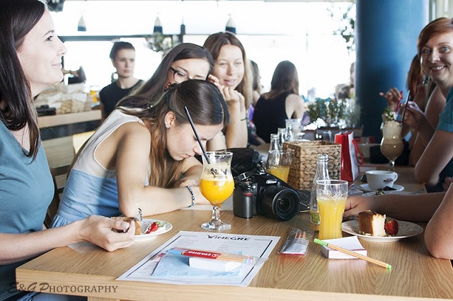 Umówiłyśmy się w restauracji Vinegre di Rucola. Znajduje się ona w Gdyni na trzecim piętrze Muzeum Morskiego. Polecam wybrać się tam i poczuć na własnej skórze śródziemnomorski klimat i zobaczyć na własne oczy roztaczający się z tarasu widok na plażę i zatokę.