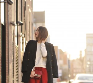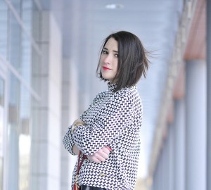 W dzisiejszej stylizacji bazą jest sukienka w pepitkę. Wzór ten jest nietypowy, ponieważ nie jest klasycznie czarno-biały, tylko niebiesko-czarny. Płaszcz, rajstopy oraz buty dobrałam właśnie w ciemnym czarnym kolorze. Natomiast żeby urozmaicić i rozjaśnić cały zestaw zdecydowałam się na torebkę oraz pasek w mocnym, energetycznym, różowym kolorze.